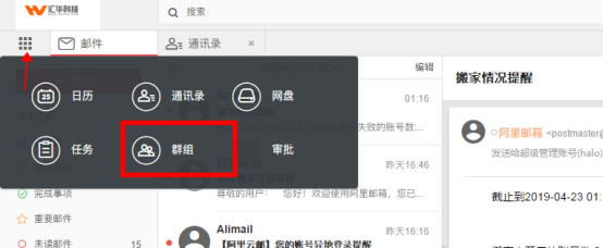登录邮箱web端,点击菜单栏,选择群组