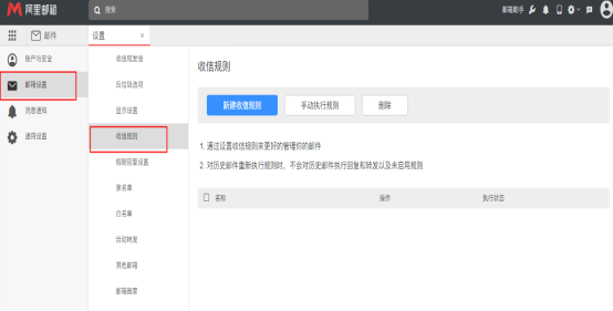 4、检查收信规则里面是否有设置自动转发。(一般都是空的,除非自己有设置,如果不是自己设置的就要注意了)